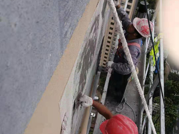 取小棍粘点外墙涂料,能挂丝长而不断均匀下坠的为好。